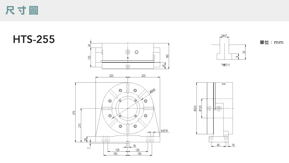 HTS圓盤式尾座 油壓式剎車圓盤式尾座采用日本進口之蝸桿/蝸輪組件,具有高精度、耐磨耗、使用壽命長等諸多特點。 簡易的背隙調整,當蝸桿/蝸輪組件使用一段時間后,會產生背隙大的情況,從而影響分度盤的定位精度。此時只需調整蝸桿即可減小背隙,使分度盤回復到正常的定位精度。 全圓周環抱剎車-不偏擺-不位移,利用油壓鎖緊力將整個圓周,作全面性鎖緊有效避免盤面偏擺問題。 相較于一般蝶式剎車,全圓周環抱剎車具有更大鎖緊力,無振動,確保機器加工精度。 高穩定性,數控轉臺采用高強度鑄鐵,經熱處理等程序, 機臺穩定不變形。